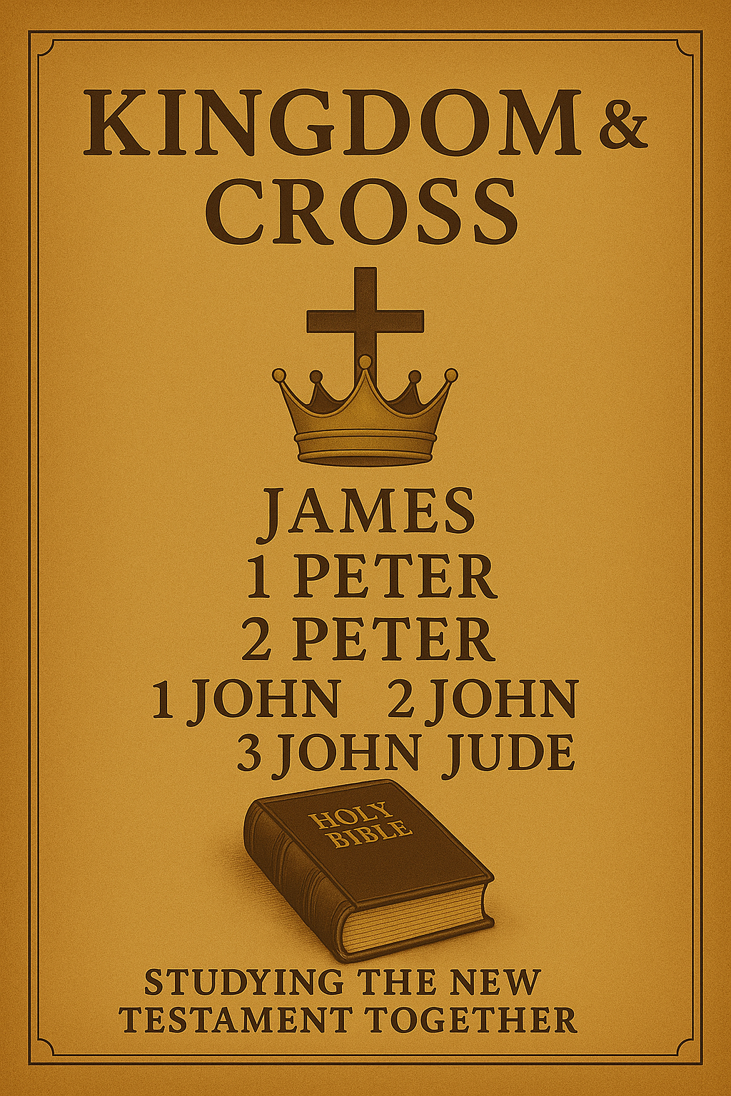 Kingdom & Cross: General Epistles guides readers through the New Testament letters of James; 1 & 2 Peter; 1, 2 & 3 John; and Jude, offering practical wisdom and pastoral encouragement for believers navigating faith in a challenging world. Written to strengthen early Christian communities, these letters call followers of Christ to live out authentic faith, pursue holiness, stand firm against false teaching, and love one another deeply as members of God’s family.